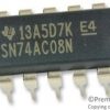 SN74ACT08D, ЛИ1The SN74ACT08D is a quadruple 2-input Positive-AND Gate. This device perform the Boolean functions Y = A • B or Y = A + B in positive logic. The device operates at a voltage range of 4.5 to 5.5V with inputs accept voltages to 5.5V and inputs are TTL-voltage compatible.