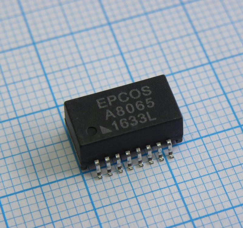 Телекоммуникационный трансформатор, 10/100Base-T 1CT:1CT, 16 выводов, 12.7×6.9×5.6mm